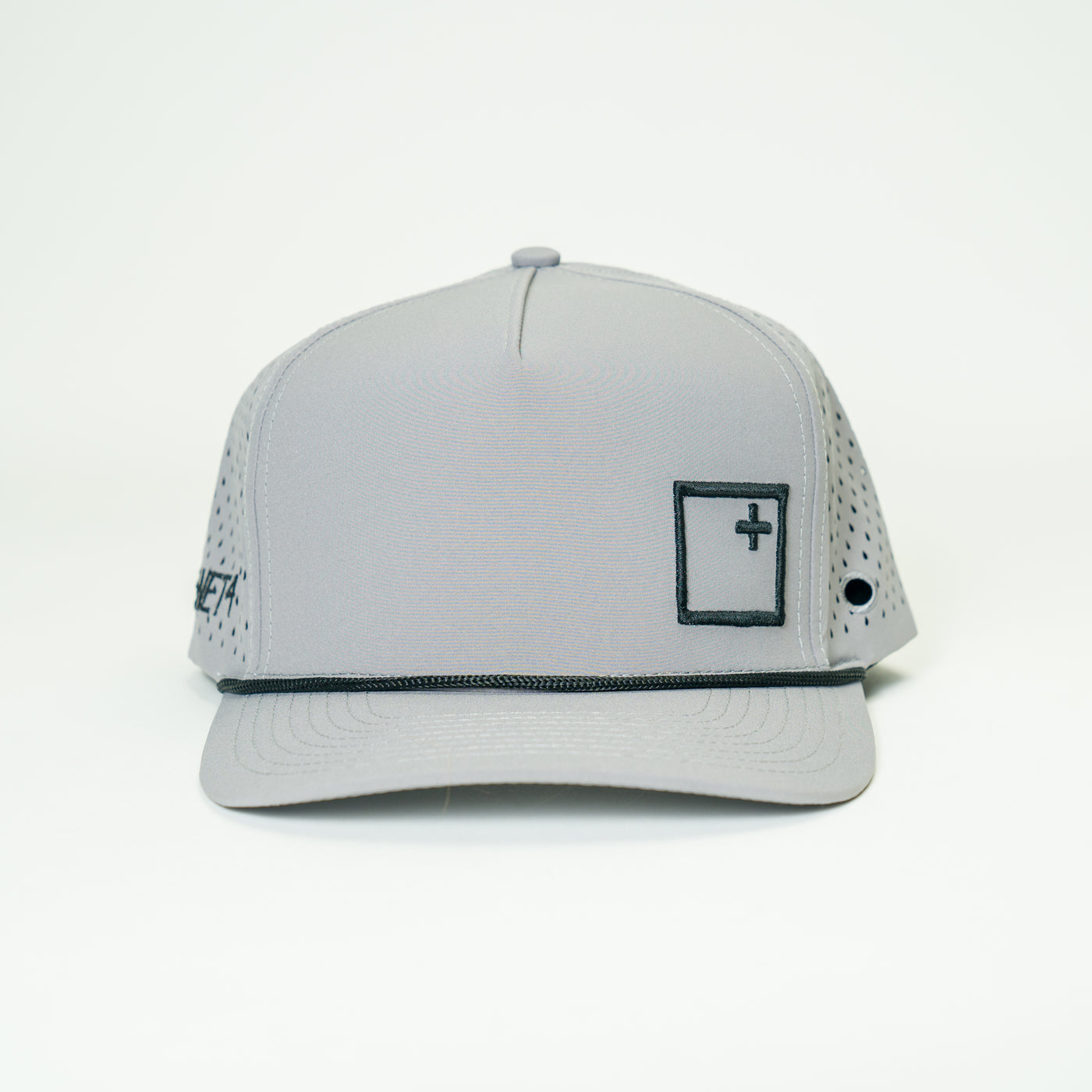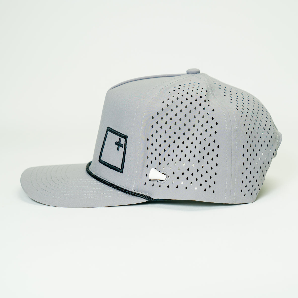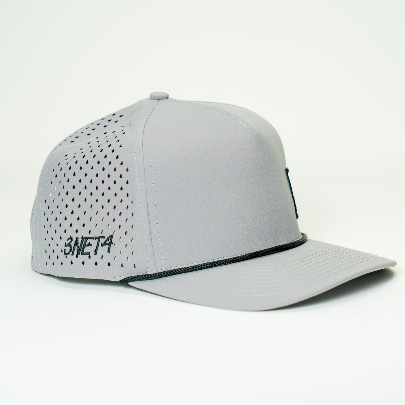 Gray Performance Water Resistant Golf Hat Snap Back Black Rope with Black Puff Logo